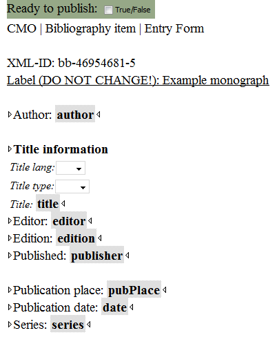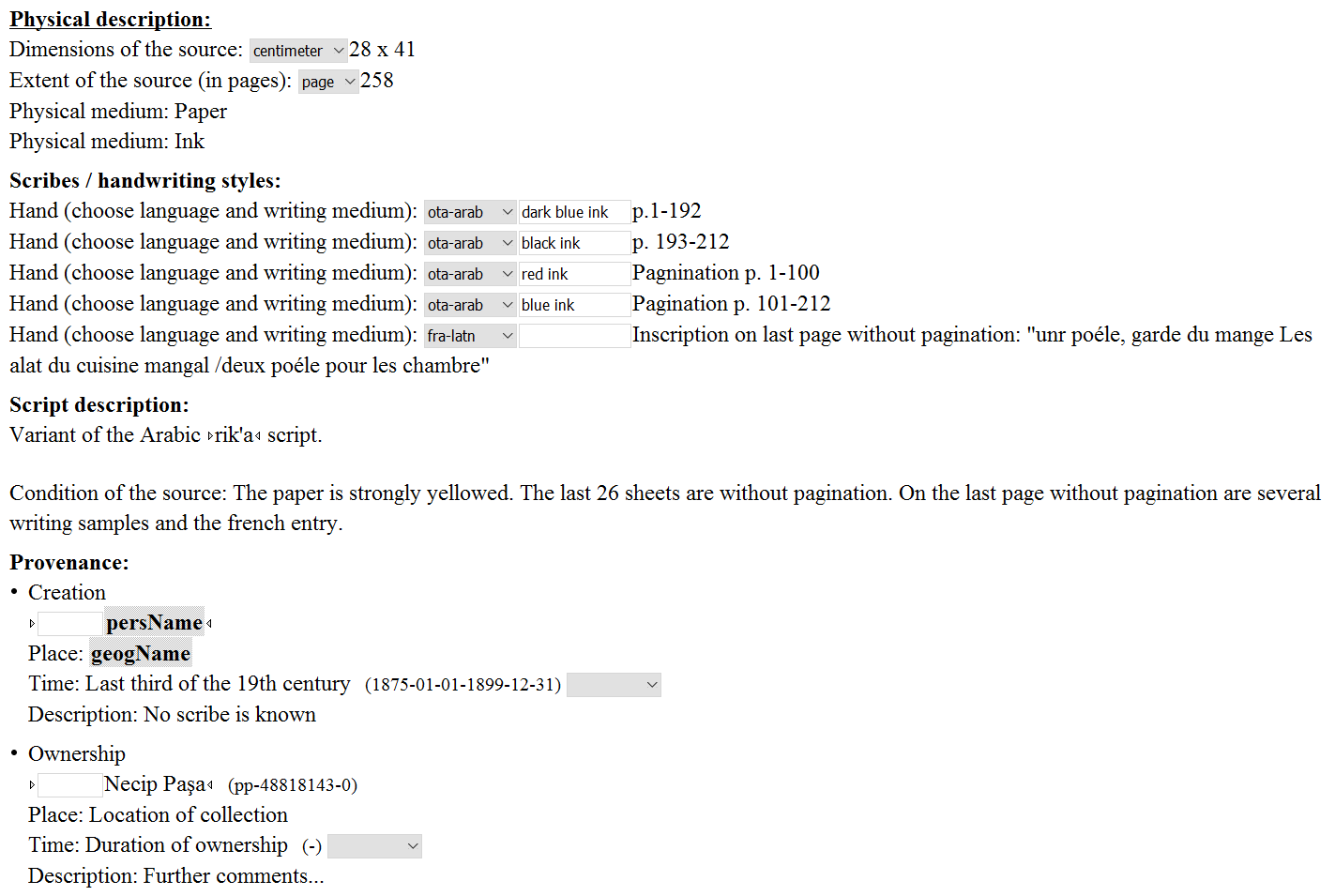 The <idno> element contains the standardized spelling for the item. It is important to avoid any usage of typewriter apostrophes in these standardizes spellings, but only typographic correct Unicode symbols (see Wikipedia: Apostrophe, green ones are okay). Otherwise it is not possible to reference to an item. For an explanation how to insert typographic correct apostrophes also follow the given link.
